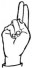 На ћирилици написано МИЊА ПЕРУШИНОВИЋ састоји се из 15 слова [?]. Исписано ћириличном једноручном азбуком за глувонеме: